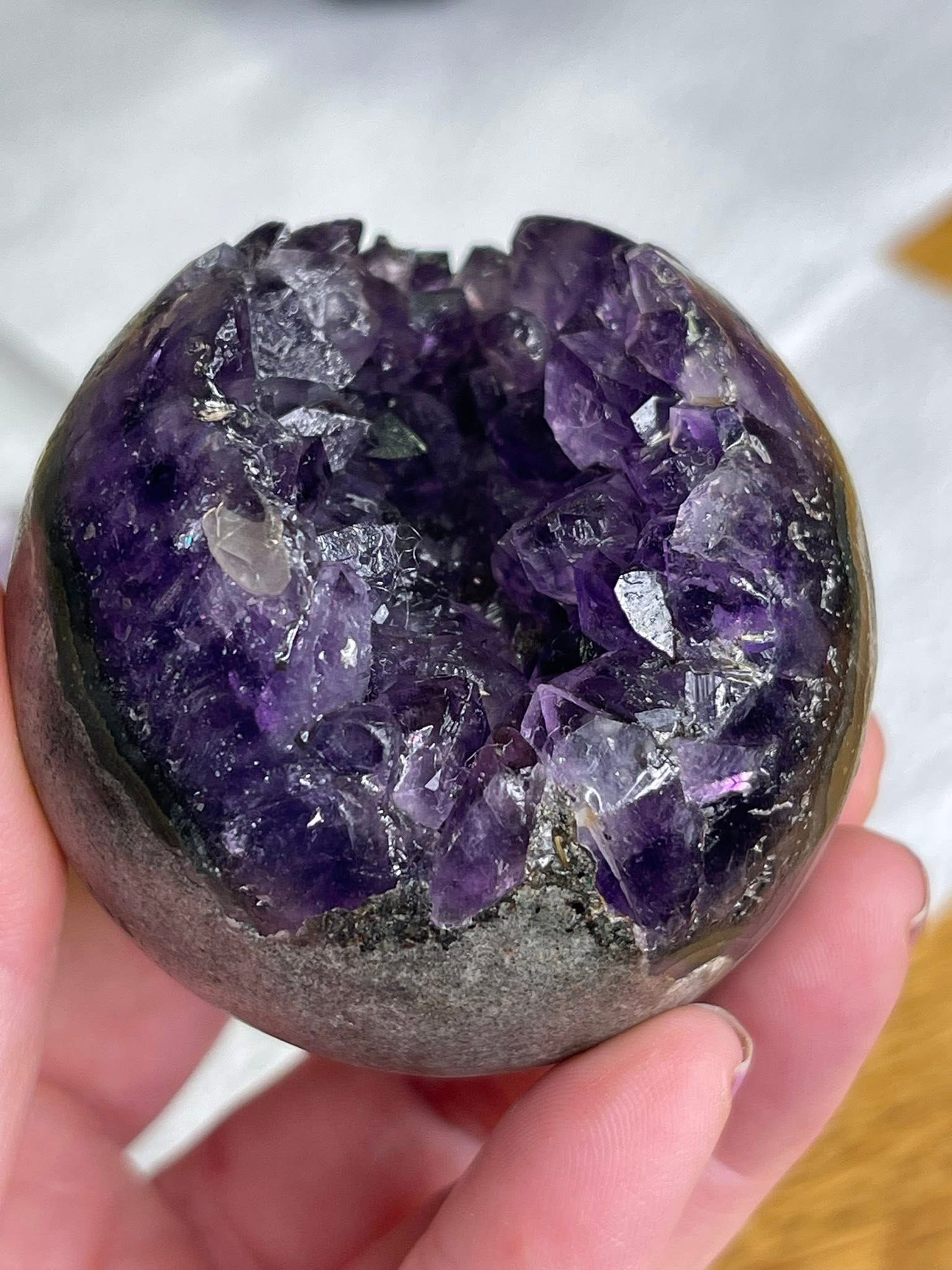 Ametyst geode sphere med svart krystall holder
