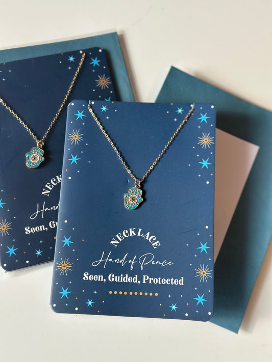 Halssmykke «hånd for fred» - med kort og konvolutt