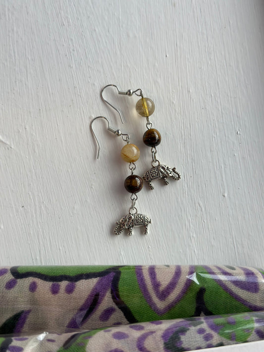 Øredobber Tiger øye & Rutilert kvarts elefant
