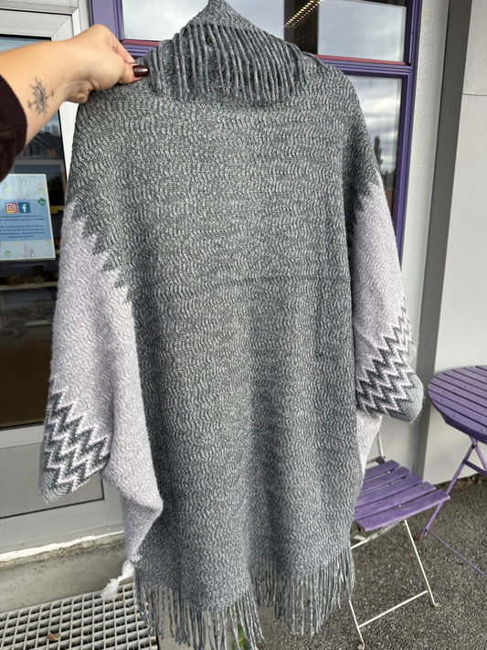One size strikket jakke / cardigan / åpen poncho - grå lavendel