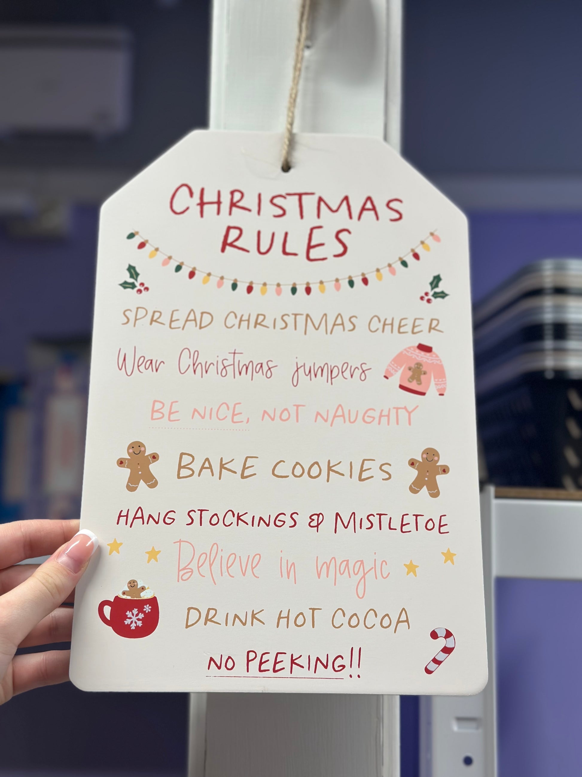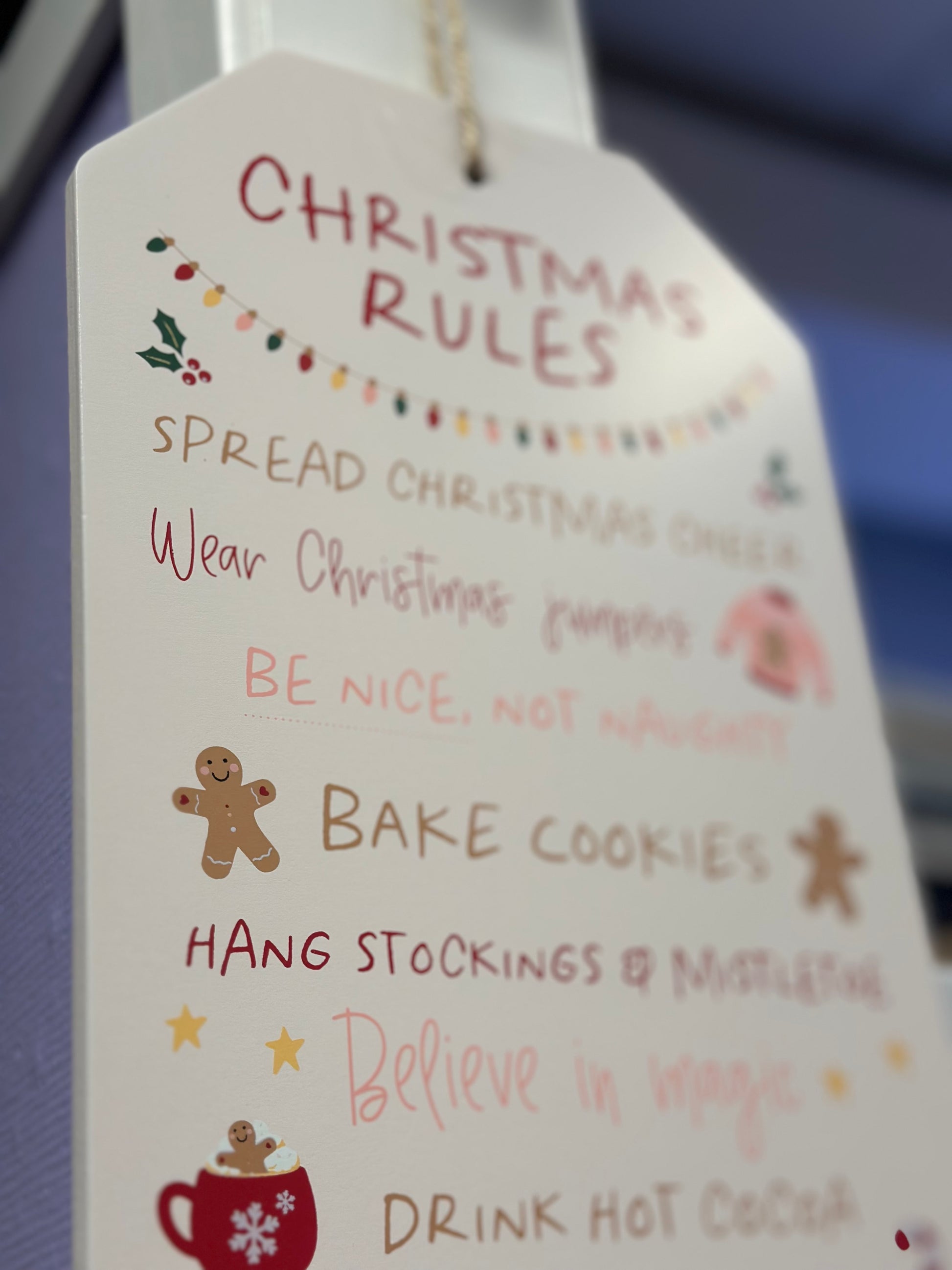 Kjempesøtt skilt med juleregler og påminnelser for julen 💕