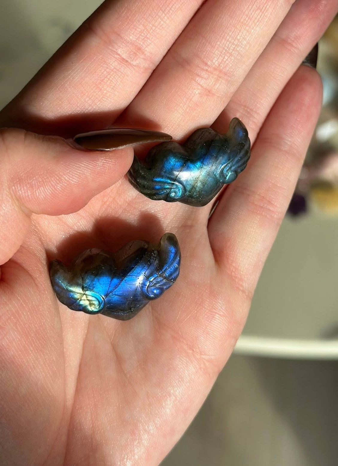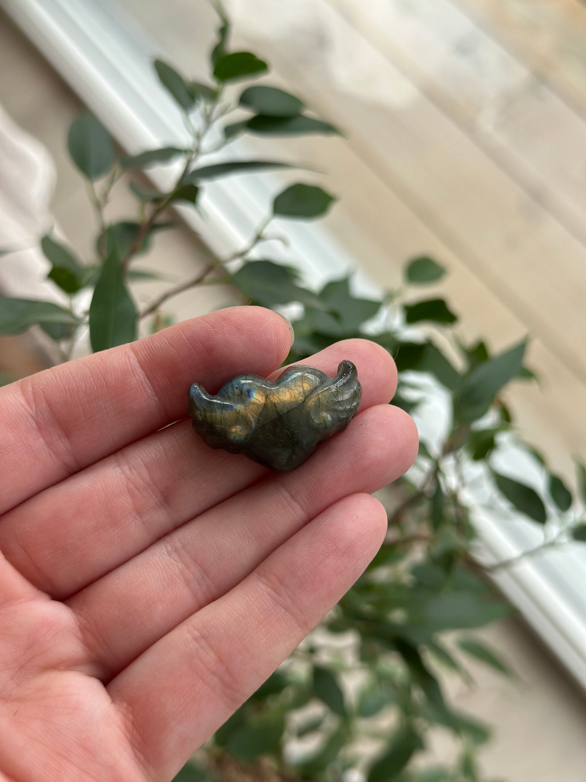 Labradoritt hjerte med vinger