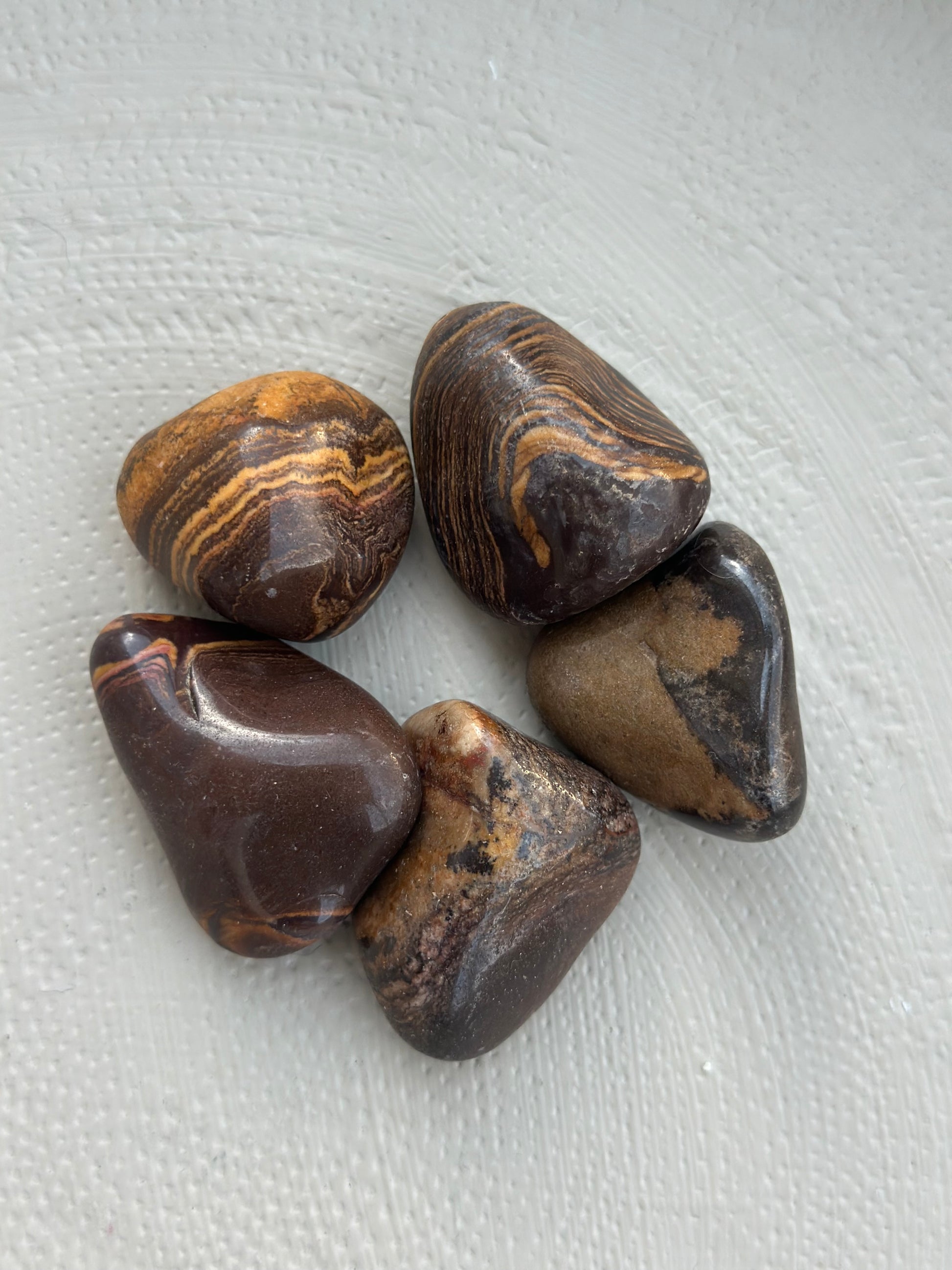 Farge, fasong og str kan variere, vi plukker ut intuitivt den rette for deg 🤎 Str ca 3-4 cm. Disse har et unikt mønster og ingen stein er lik, derfor er det også spennende å ha mer enn én av denne i samlingen sin 😍 En sjelden jaspis som finnes i Sør-Afrika.